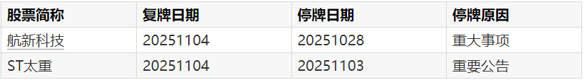 A股复牌提示:2股今日复牌A股复牌提示:2股今日复牌
