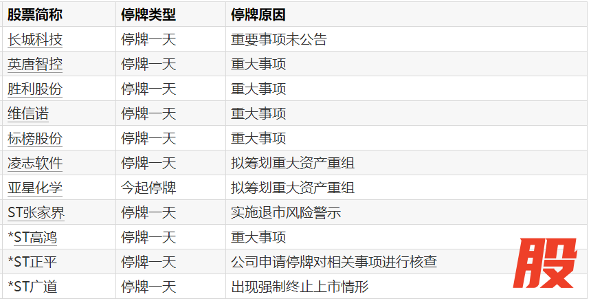 A股停牌提示:11股今日停牌A股停牌提示:11股今日停牌